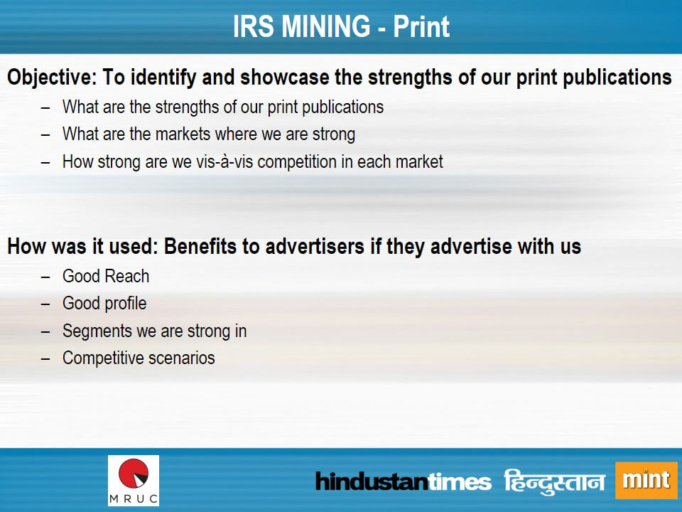 “The Indian Readership Survey has been the lifeline of media planning in India for more than 2 decades. From readership to other media habits to product consumption to durable ownership, IRS offers a wealth of data which forms the foundation...